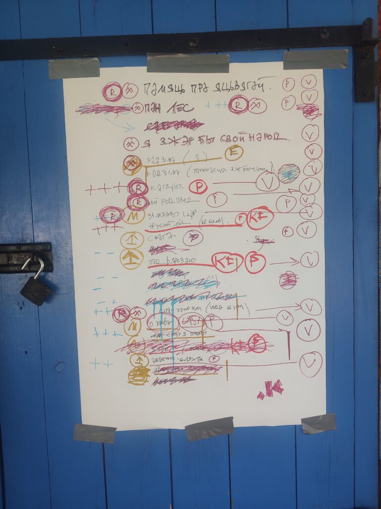 Kompozycje zostały rozpisane na głos i unikatowy instrumentaż, z udziałem nagrań terenowych i interwencji w przestrzeni lasu. Program jest rezultatem prób i prac w sercu Puszczy Białowieskiej, między szczelinami niedomkniętych okiennic starej chaty. Dlatego nie można zapomnieć o sarnach, ptakach, szumie liści, deszczu i burzy. I przodkach.